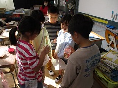 さて、教室では朝の会の時間に、児童会から協力を依頼された学級委員の呼びかけで募金が行われました。ビニール袋や財布に入れられたお金を大事そうに取り出し、学級委員が持つ募金箱に入れていきます。集まった募金は、職員室で先生に預けられ、1つの募金箱にまとめられていきました。