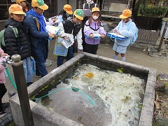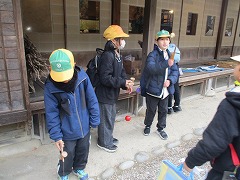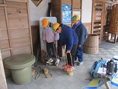 3年生が社会見学に出かけました。社会で学んだ昔の道具について、三州足助屋敷で本物を見て確かめます。