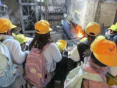最初は学級ごとに施設内を巡りました。しおりには、先生から出された「足助発見クイズ」があり、昔の道具の名前などを見つけながら見学を進めました。子どもたちは、「これってミシン?」「昔は、電気製品は少ないね。」疑問や感想を伝え合っていました。マナーよくてきぱき見学を進めたので、時間にゆとりができたので、午前中のうちに少し早めの班別行動も行いました。作業をしているところを見学するときには、「失礼します。」「何をやっているんですか?」と声をかけ、礼儀正しくふるまうこともできました。その後の体験活動、2回目の班別活動も、社会見学の約束を守って行動することができました。充実した1日になりました!