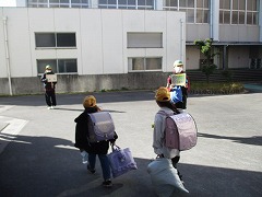 永和小学校では、下校のために集まる際にしゃべらないというきまりがあります。靴を履いたら静かに集まることで、全体の集合が早くなり、下校も時刻通りに行えます。スムーズに集合できるよう、生活委員がお手伝いをしています。
