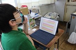 今日は、5年生が理科の授業で活用していました。発芽に必要な条件を探すための実験準備をして、その後、発芽する条件と発芽しない条件を予想して、一人一人アンケート形式で回答しました。「ここの所は難しいな・・・」というように、自分で考えを整理して答えました。