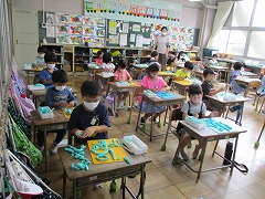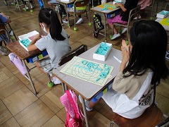 運動会の練習と並行して、通常の学習も進めています。1-2の4時間目は、図工の「ひもひもねんど」を行いました。
