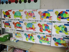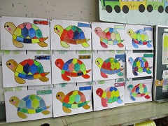 教室の後ろには、水彩絵の具で描いた亀が掲示されていました。