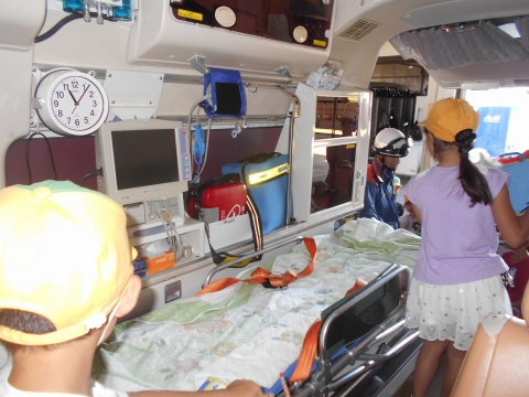 はしご車の仕組みを知り、はしご車での救助の体験をしたり、消防士さんの服を着て、放水体験をしたり、救急車の仕組みを見学したりと、たくさんの新しい発見や経験をしました。教科書や資料で見るだけでなく、実際に触ったり、経験したりでき、素晴らしい学習ができました。4年生みんな、今後の社会の授業でしっか活かしてくれると思います。