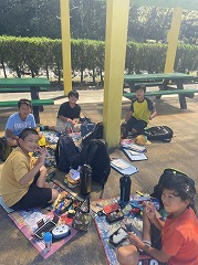 昨日に引き続き、とてもよい天気となった永和小学校の社会見学です。5年生の目的地はリトルルワールドです。世界の国々の様々な生活について、グループで立てた計画に沿って調査をします。