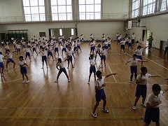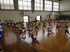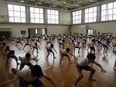 4時間目は高学年の合同練習です。低学年とは異なり、静と動を意識する、きびきびとしたロックソーランを目指して練習をします。今日の仕上げのダンスでは、「構え」の姿勢から音・動きがそろった、高学年らしい動作が見られました。曲が始まってからも、動き・声を意識しており、練習初日の出来栄えとは思えませんでした。きっと、ここまでの間に各学年で練習を重ねていたんでしょうね。今年も本番が楽しみになってきました♪
