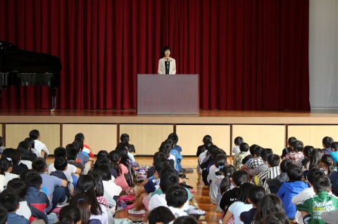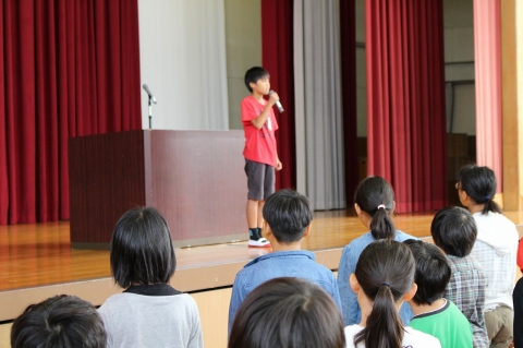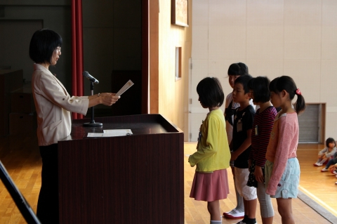そんな感謝の気持ちをもち、前期最終日の今日、久しぶりの体育館で、「前期終了集会」が行われました。校長先生や児童会会長の話をうけ、全校みんなが前期を振り返り、後期でのさらなるがんばりを約束しました。さらに理科作品などの表彰も行われ、前期の素晴らしい締めくくりを体育館で行うことができました。
