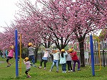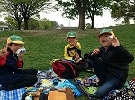 1年生は、片道1時間を歩いて、源氏泉緑地に行きました。鯉のぼりが飾ってあり、八重桜が見頃でした。子どもたちは、遊具でいっぱい遊び、おいしいお弁当をしっかり食べて帰ってきました。さすがに疲れたようでした。