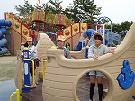 5年生は、JR富田浜駅から歩いて約15分の霞ヶ浦緑地公園に行きました。公園内の「霞☆ゆめくじら」の遊具で、みんな汗をかきながら、元気いっぱい遊びました。