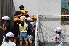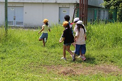 夏休みを目前に控え、最後のレクリエーションをしました。宝探しです。先生が隠した折り紙を、みんなで一生懸命に探していました。とても暑いため、途中で水分補給をし、先生からのヒントを頼りに、再度探しました。物陰や裏側などに隠されており、高難易度の宝探しでしたが、見つけた子は嬉しそうに「あったー!」と喜んでいました。最後は、宝が隠された場所をみんなで巡り歩き、答え合わせをしました。「もっと探したかったー」と言う子もおり、レクリエーションを楽しむことができました。