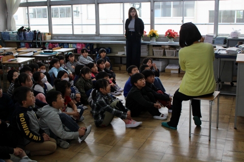 今日は、朝の読書の時間に、ボランティアの方とPTAの方による読み聞かせが行われました。絵本を片手に、上手に読まれる姿を、子どもたち一人一人が真剣な眼差しで聞き入っていました。読み聞かせが終わった後、大きな声で「ありがとうございました」と感謝の気持ちを込めたあいさつをしていました。子どもたちが、本を読むことをさらに好きになった時間でした。