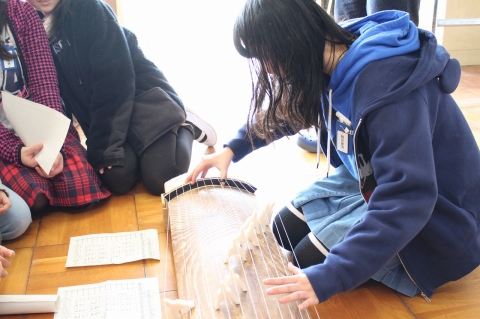 今日の午前中、廊下を歩いていると、どことなく琴の音色が聞こえてきました。視聴覚室をのぞいてみると6年生が琴で「さくらさくら」を弾いていました。