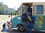 後、「ヘルメットは必ずかぶって頭を保護すること」「運転手の人とアイコンタクトをとる」事を守れば、事故やけがも防ぐことができることも教えてもらいました。