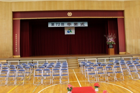 朝7時頃、静まりかえった体育館。準備万端で、永和小学校の72回目の卒業式が始まるのを待っていました。