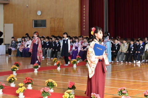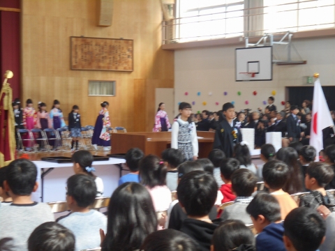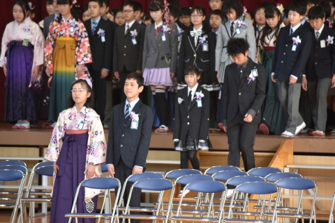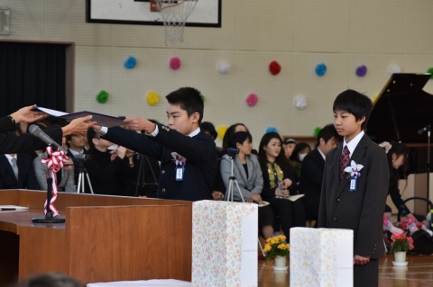 卒業証書授与。6年間の思いを込めた返事。そして、自分の将来についての誓いを堂々と発表し、立派な姿で卒業証書を受け取っていました。
