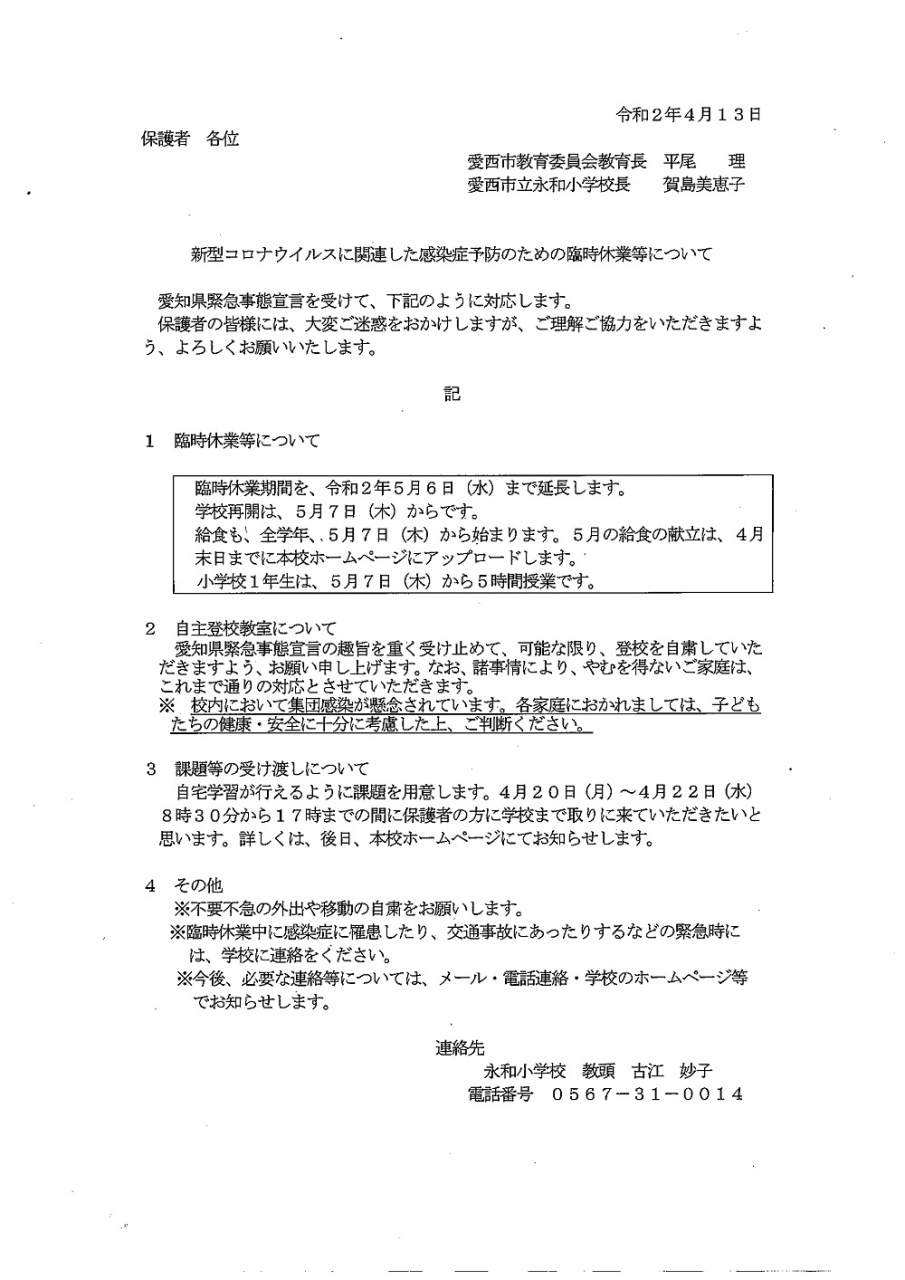 新型コロナウイルスに 関連した感染症予防の め臨時 休業 等について