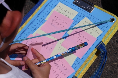 みんな話を聞いたり、実演を見たりしながら、気がついたことをどんどんメモしていました。たくさんのごみ袋が一気に圧縮されていく様子を見て、驚きの声を上げていました。