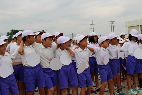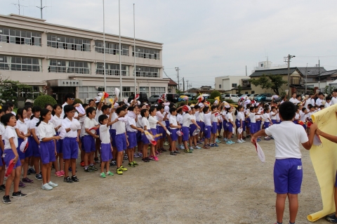 休憩後、各色の応援練習が行われました。昨日の練習を活かし、手具なども使い、本番に近い動きの練習をし、中学生のリーダーのもと応援の完成をめざし、がんばっていました。運動会に向けて、どんどん各色の団結力が高まっているように思います。