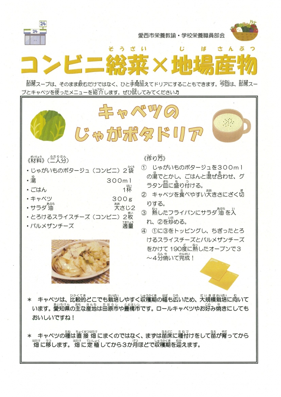栄養教諭より【⑪キャベツのじゃがポタドリ】