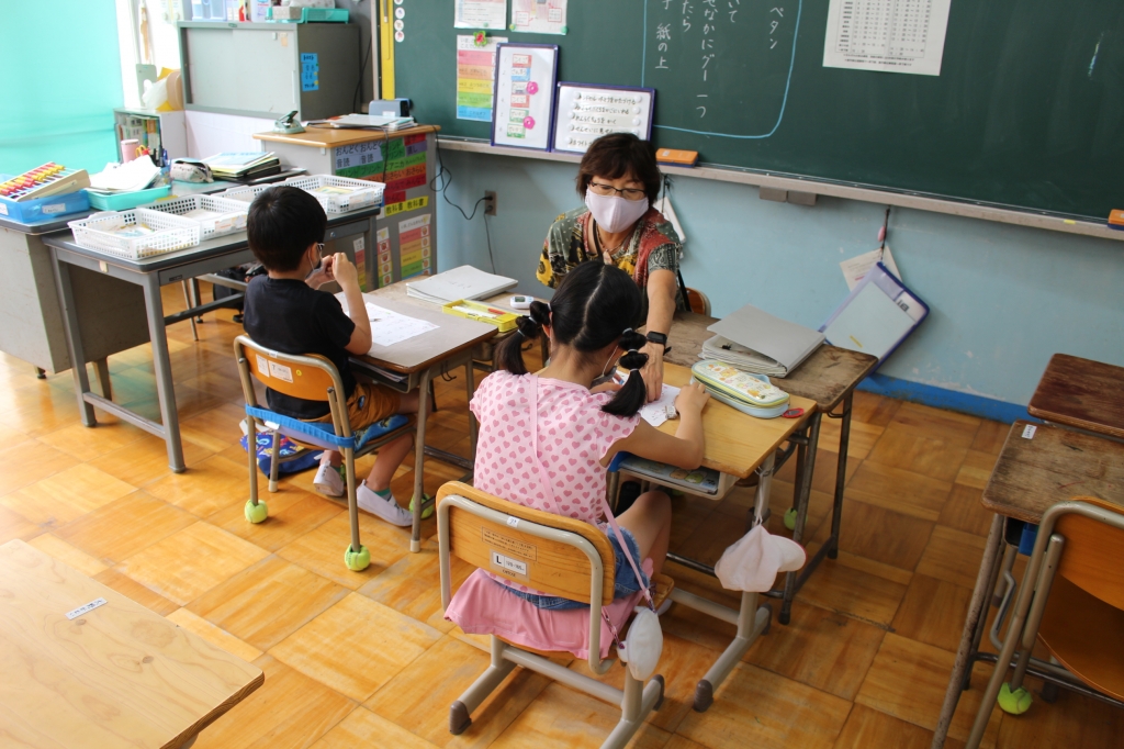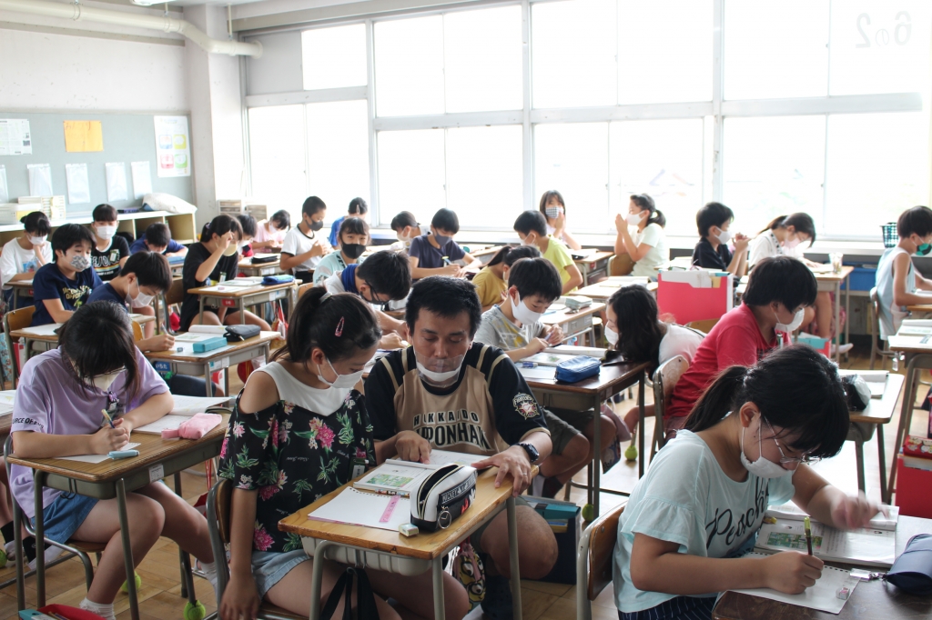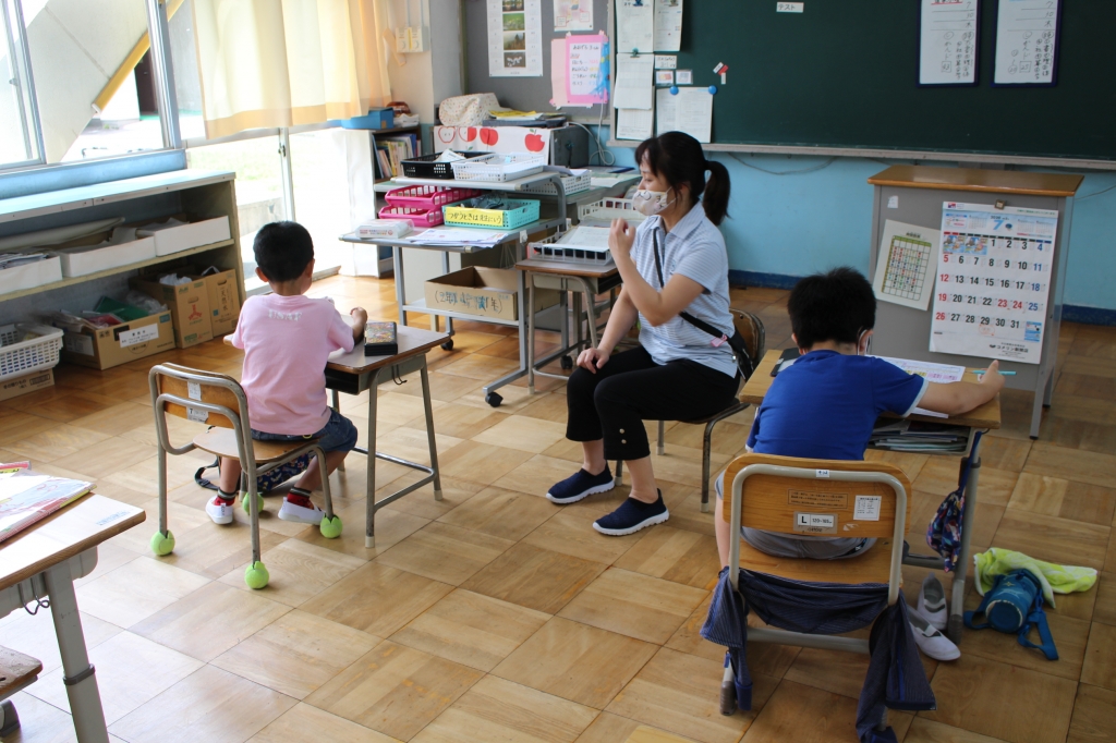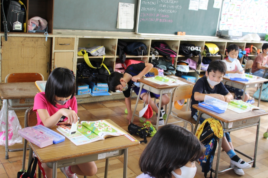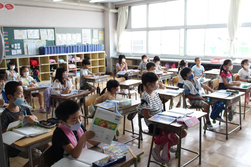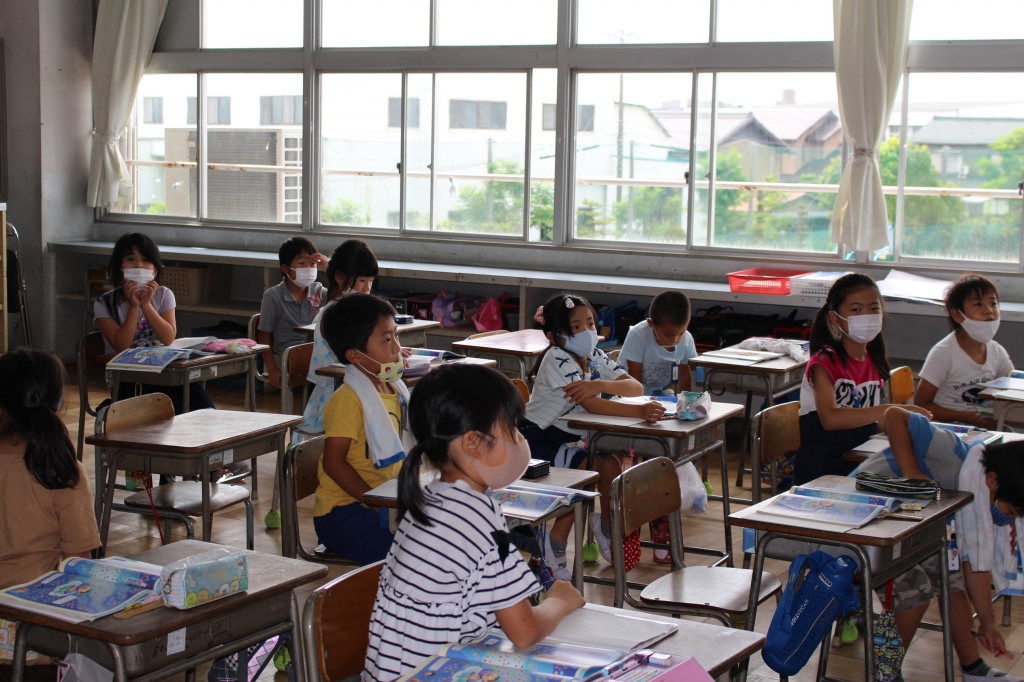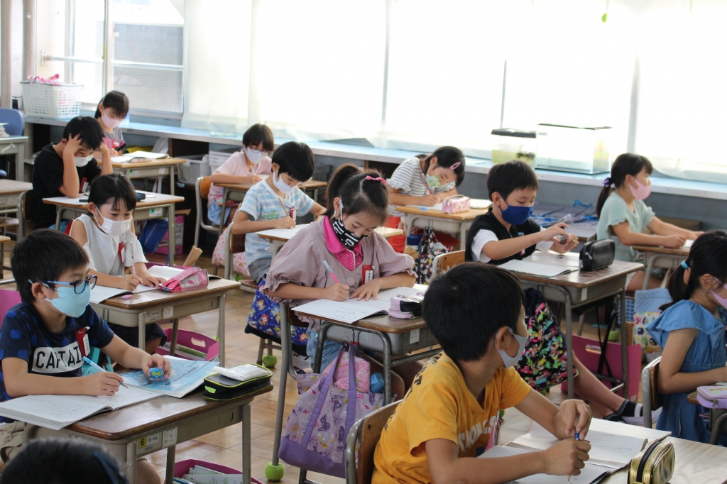 エアコンをつけて、換気をしながらの授業。こまめに水分補給をしながらの体育。いろいろな対策、工夫をして授業に取り組んでいます。