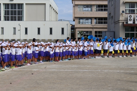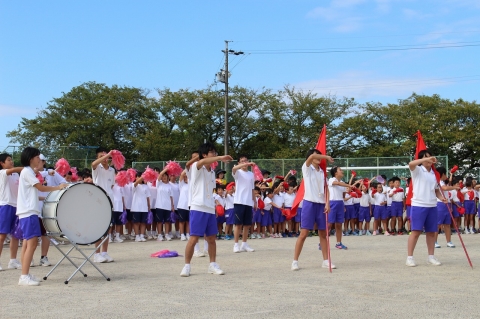 先週は、環境委員が企画した石拾い大会があり、今日は、昼放課に運動委員が器具を配置する練習を行い、授業後には金管バンド部が行進曲などの練習を運動場で行っていました。運動会への準備が整ってきています。