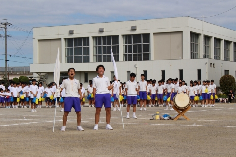 令和最初の小中合同運動会が、今週の土曜日と迫ってきました。今日の1時間目は、3回目になる中学生と合同の運動会練習です。赤組も白組も、先週まで練習してきたことを生かし、本番さながらの応援練習をしていました。