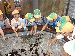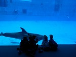 海の中の生き物に、子どもたちは興味津々です。赤ちゃんイルカやイルカのパフォーマンス、ベルーガに歓声を上げていました。