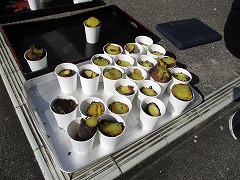焼くこと約1時間。遂に焼き芋が完成しました。おこげが多かったので、紙コップに分けてもらい、食べることになりました。「いただきま~す!」「ありがとうございました!」「甘~い!」「おいしー!」内側はきれいな金色に焼きあがっており、子どもたちも大満足!お代わりをする子もたくさんいました。おいしい焼き芋をいただきました♪