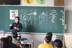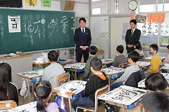 4年生が己書体験をしました。自分の好きな字や思いをもとに、講師の先生にデザインしてもらったものを、色紙に筆ペンで清書します。何と、1組には愛西市長さんや愛西市の教育長さんも見学に来られました。いい姿を見てもらえるでしょうか!?