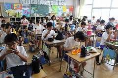 今日は運動会の代休の関係で、日曜日ですが、普通の授業日でした。朝から雨が降り、あまり気が乗らない子もいたのではないでしょうか?・・・それでも、今日はみんな楽しみにしていることが・・・。お昼の『お弁当タイム』です!!休み時間になるたびに、机の上にお弁当を出している子もおり、楽しみにしている様子が、とても×2伝わってきました。