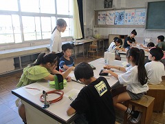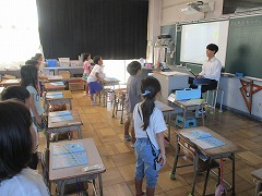 先週から永和小学校で教育実習をしている2名の大学生がいます。今日は、1年生と5年生で、それぞれ音楽、理科の授業を教えてくださいました。1年生は音楽で、鍵盤ハーモニカの使い方を教えてもらったり、「どれみのうた」を電子オルガンの伴奏で一緒に歌ったりしました。5年生は理科で、塩の溶け方の観察や、溶けた塩の行方を予想したりしました。未来の先生たちの授業はどうだったでしょうか?