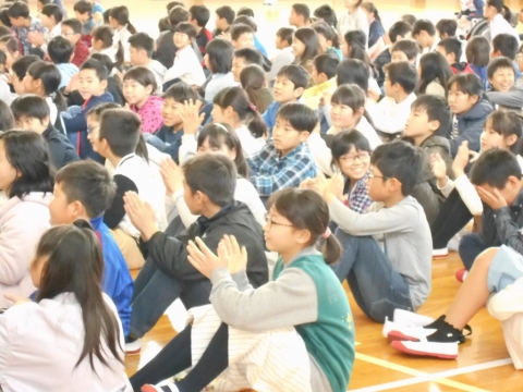 1年生から6年生までのすべての児童がそろい、永和小学校の新たな1年がスタートしました。まずは今年度、永和小学校へ赴任した先生方の着任式が行われました。新しい先生も子どもたちも大きな声であいさつし、お話の後にはあたたかい拍手が響き渡りました。