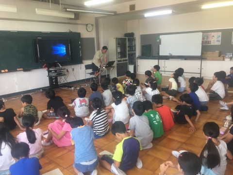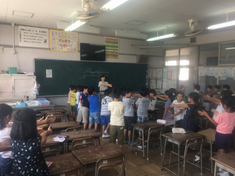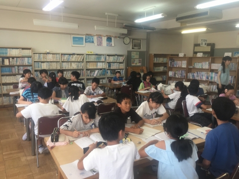 連日のように朝から30℃以上の気温となり、本当に暑い中でしたが、子どもたちは元気にあいさつをし、登校してきました。登校前から学校中の窓を開けていましたが、やはり教室は暑く、扇風機の風と水筒のお茶で暑さをしのいでいました。暑い中でも、夏休みの宿題の答え合わせを集中して行ったり、運動会のための準備をしたり、担任の先生とともにいろいろな活動を行っていました。また、学年や学級が交代で、クーラーのある特別教室で、国語や道徳などの授業を進めていました。少しでも子どもたちが体調を崩さずに過ごせるよう工夫し、学年出校日を終えました。夏休みとはいえ、まだまだ暑い日が続く予報となっています。ご家庭でも熱中症などに気をつけ、元気で楽しい夏休みをお過ごしください。