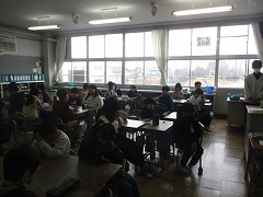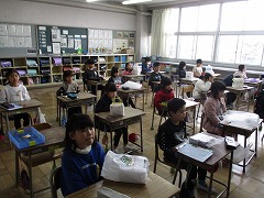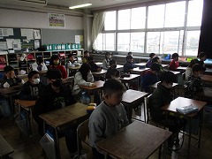 4-1では、5時間目が終わる少し前に、先生から東日本大震災の話を聞き、子どもたちの表情ががらっと変わりました。5時間目の終わりのチャイムが鳴ると、そのまま、全校で黙祷をしました。静かな1分間、亡くなった方々のご冥福をお祈りしました。