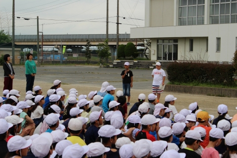 明日、6月1日(土)に愛西市小学校陸上競技会が行われます。今日、児童会が主催する陸上競技会の壮行会が行われました。