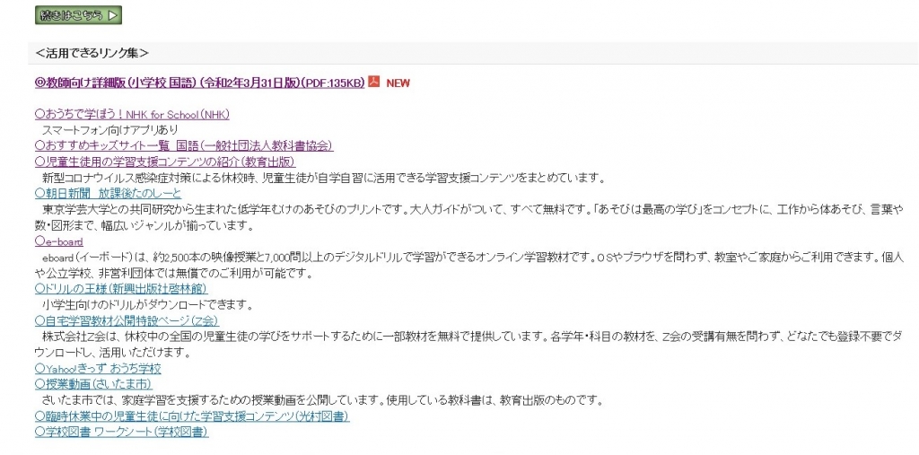 『新型コロナ対策による臨時休校期間中の学習支援サイト(リンク)』をクリックする。
