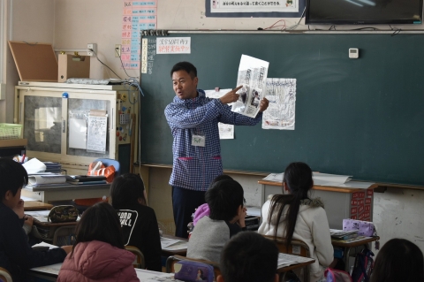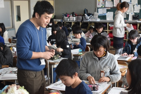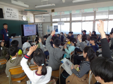 3月ということで「東日本大震災」をテーマにしたり、2020年が待ち遠しく「東京オリンピック2020」をテーマにしたりと、それぞれの思いを生かしてオリジナル新聞づくりを進めていきました。わからないところがあった場合は、講師のみなさんが優しく助けてくれました。最後に新聞を完成できた児童が、自分のオリジナル新聞をみんなに紹介する場面もありました。