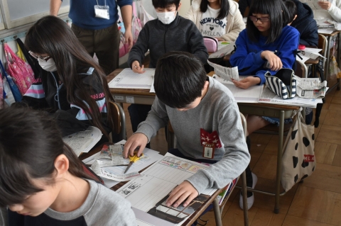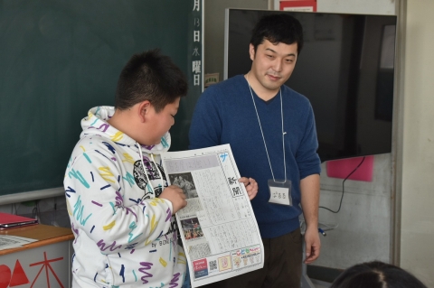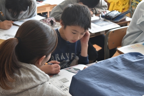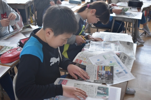 3月15日(金)に行われた2回目の授業で、「オリジナル新聞づくり」にチャレンジしました。作り方の説明を聞いた後、自分で決めたテーマの記事が載っている新聞をじっくり読み、オリジナル新聞づくりをスタートしていきました。