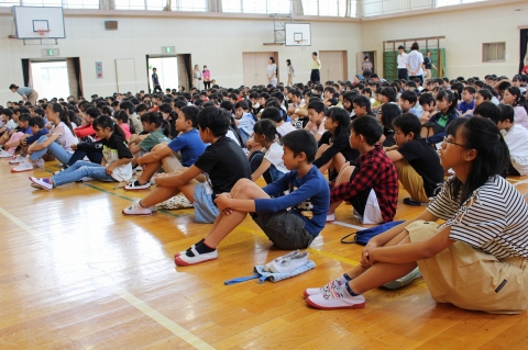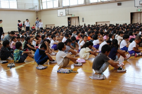 今日は、永和小学校の前期が終了する日です。そのため、授業の前に学期の締めくくりである「前期終了集会」が行われました。校長先生が出張で不在であったため、教頭先生が、前期を振り返ったお話をしました。教頭先生のお話の間も全校児童みんなとてもいい姿勢で話を聞くことができました。