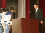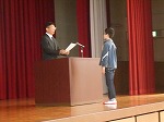 朝礼で、「児童会」「委員会」「学級委員」「代議員」の認証が行われました。