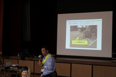 舞台の上を車の運転席に見立てて、「死角」についてわかりやすく説明していただきました。