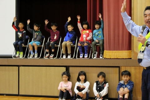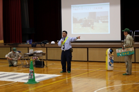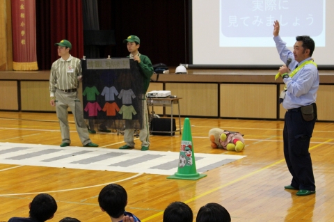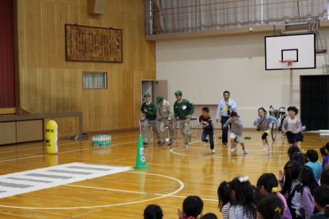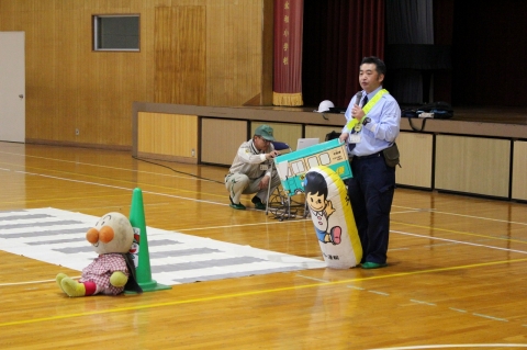雨天で運動場での実演をもとにした交通安全教室ができませんでしたが、講師の方々のアイディアで、とてもわかりやすく学ぶことができました。教えてもらったことをしっかり実践し、交通安全を意識した毎日を過ごしてほしいと思います。