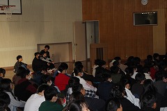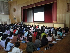 昭和24年から人権啓発活動を行っています。今日は、低学年にも分かりやすいように、校長先生の読み聞かせで人権啓発が行われました。