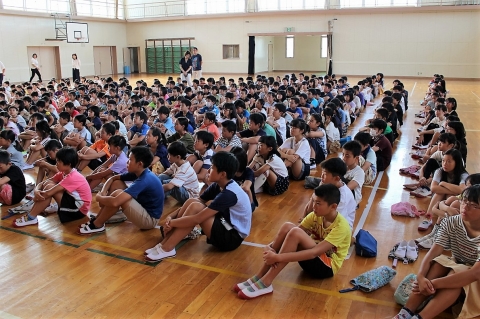 夏休みが終了し、永和小学校の校内に子どもたちの元気な声が戻ってきました。今日のスタートは、朝礼でした。