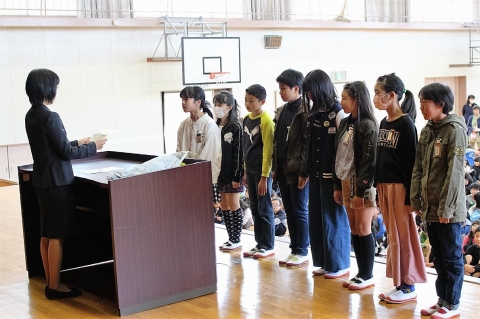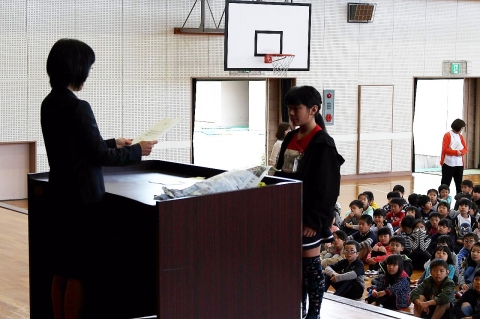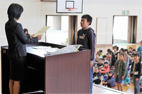 平成31年度(令和元年度)がスタートして1週間が経ちました。各学級でも係活動や当番活動の役割が決定し、動き始めている頃です。そんな中、今日の朝礼で委員長や各学級の代議員、学級委員の認証式が行われました。それぞれ委員会や学級で選ばれたリーダーです。児童会役員とともに永和小学校のために、全校児童のために頑張ってくれるメンバーです。認証された今日からみんなの活躍を期待しています。よろしくお願いします。