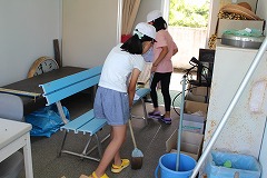 1・2時間目は6年生が作業を行いました。まずは、水を抜きながら、低学年プールを掃除していきます。階段がある角の付近は汚れもひどく、子どもたちはブラシを手に、ゴシゴシと階段や壁や床を磨いていきました。日差しがとても強く、給水タイムを挟み、熱中症に気をつけながら作業をしていきました。アメンボやゲンゴロウ、カエルなど、いろいろな生き物が棲み着いてきており、中にはカエルを捕まえている子も・・・。楽しみながらも、しっかりと掃除を頑張ってくれました。