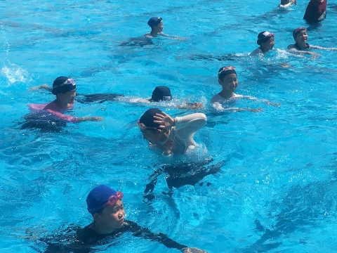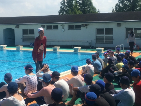 6月14日のプール開きから、地域の方で水泳指導のスペシャリストである橋本先生、二宮先生、渡辺先生が水泳指導の補助として子どもたちの水泳の授業を手伝ってくれました。