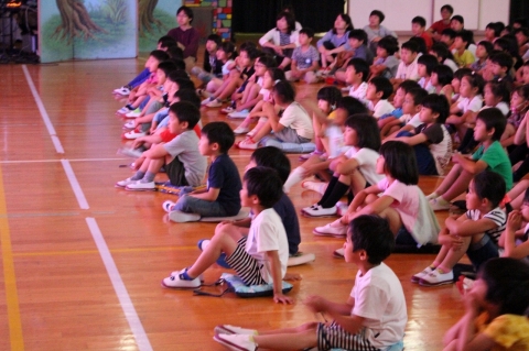2・3時間目に観劇会が行われました。劇団青い鳥のみなさんによる「大どろぼう ホッツェンプロッツ」という劇でした。美しい光と軽快な音響の中、劇団のみなさんのユニークな演技で子どもたちは楽しく観劇していました。児童会長のお礼の言葉にもありましたが、学芸会の参考にもなったと思います。最後には劇団の方みんなが退場する子どもたちを見送り、ハイタッチなどで交流しました。劇団青い鳥のみなさん、素晴らしい劇をありがとございました。