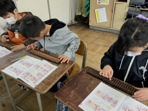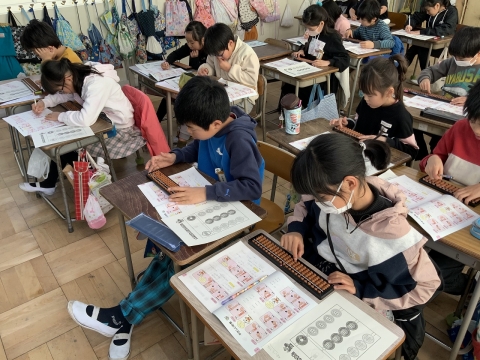 そろばんを使い、みんな集中して、一生懸命テキストの問題を解いていきました。短い時間でしたが、そろばんが初心者の児童もとても上達しました。たくさんの児童がそろばんで計算することに興味をもったことでしょう。これからも算数の自主学習の1つとして取り組み、「そろばんで培われる6つの スゴイ 力!」を身につけていく児童が増えることを期待しています。