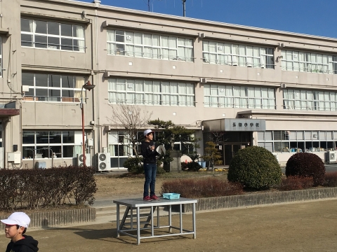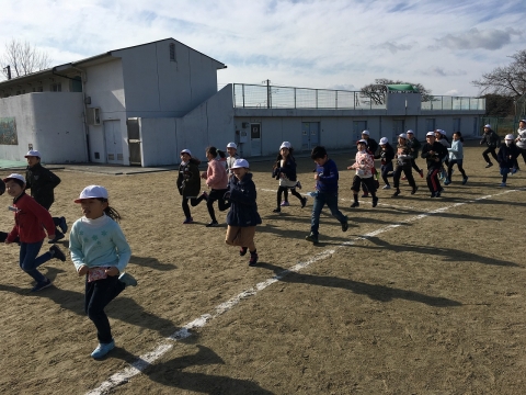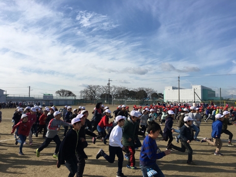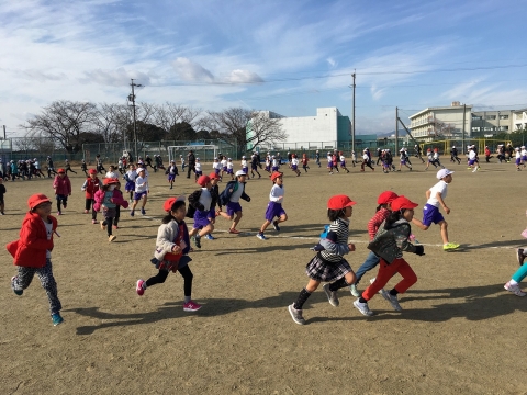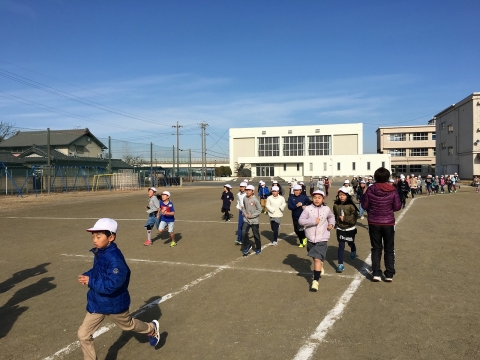 1月8日(火)から、2月5日の校内マラソン大会にむけて、かけ足運動が始まりました。週に3~4日ほど設定されており、業間の時間を使って、運動場を5分間走り続けています。寒い日ですが天候に恵まれ、今日で3回目です。